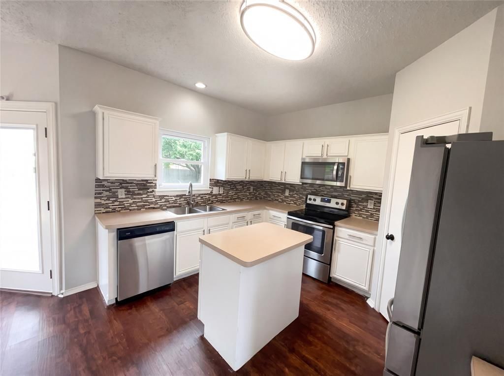 Introducing recently updated interiors with fresh paint and partial flooring replacement at 1405 Turtle Cove Dr. A fireplace provides a central point in the living area. The kitchen incorporates a practical island with an accent backsplash and all stainless steel appliances. The primary bathroom is equipped with includes a separate tub and shower. The exterior includes a patio, a convenient storage shed, and a fully fenced in backyard. Your updated, functional, and comfortable home awaits. Home comes with a 100-Day Home Warranty and a 7-Day Home Test Drive to move in 7 days early for free